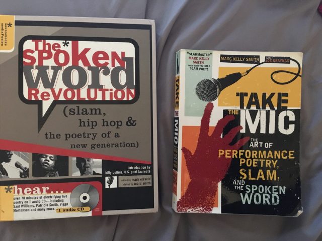 During my senior year of high school, I purchased the book, Take the Mic: The Art of Performance Poetry, Slam, and the Spoken Word by Marc Kelly Smith. At the time, I was a part of a writing program called EmersonWrites at Emerson College, and I had the opportunity to perform with a team of poets at the Louder Than A Bomb event at MIT in Cambridge. Unfortunately, I fell ill that weekend and I couldn’t perform, but this book helped me prepare and educate me on techniques and skills that slam poets possess. Even today, I still use it as a reference.